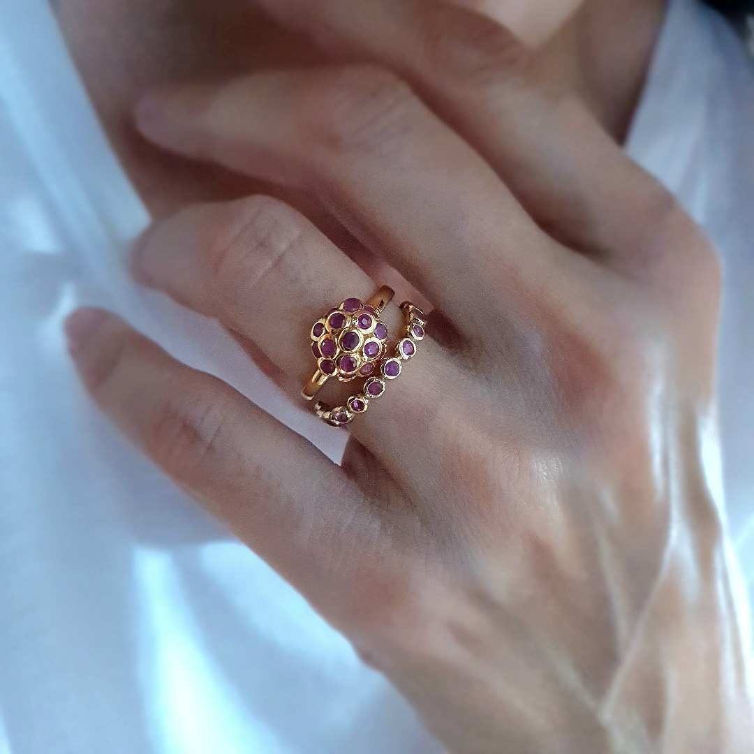 Bague alliance en argent 925 plaqué or 22 carats sertie de rubis.