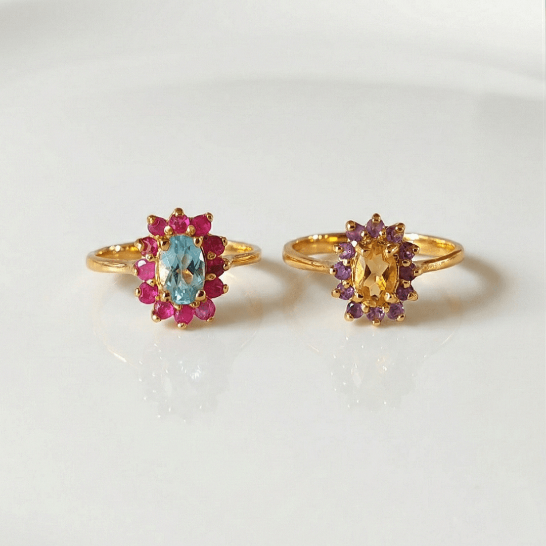 Bague Marguerite topaze et rubis