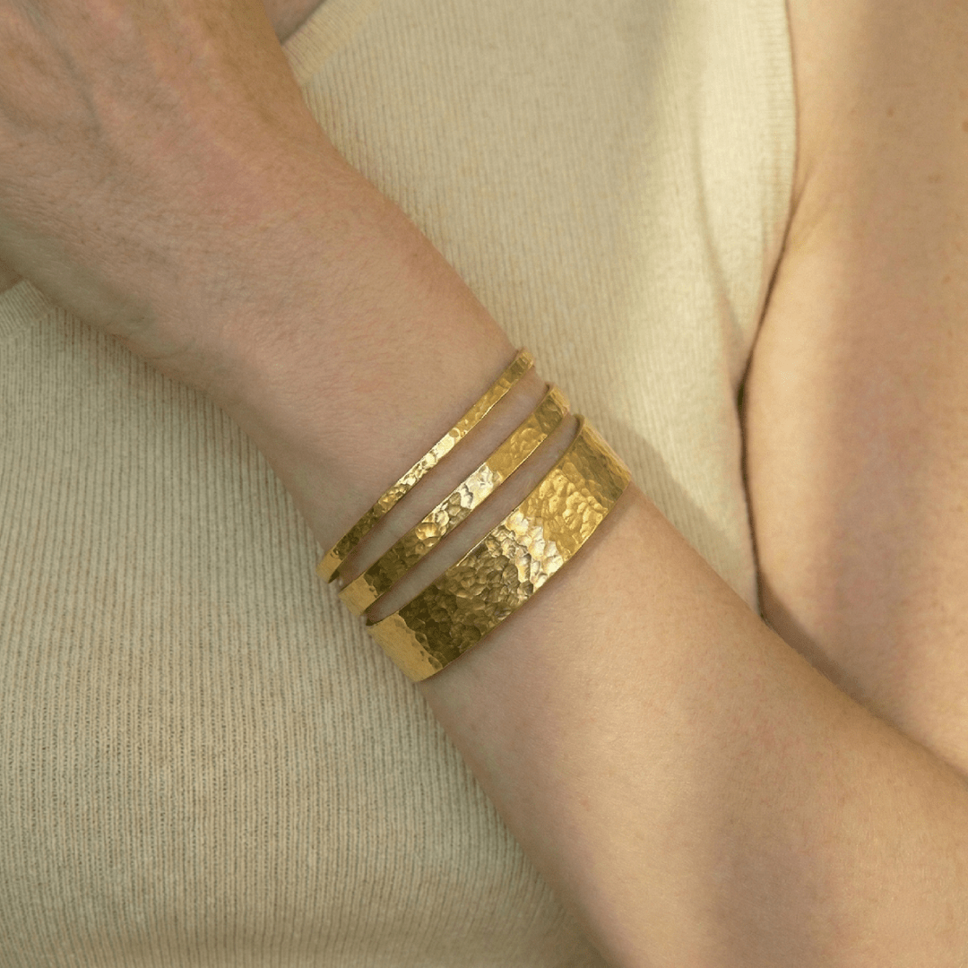 Chaque bangle est une pièce unique, entièrement réalisée à la main, garantissant un savoir-faire artisanal. Son design épuré et intemporel se prête à une accumulation élégante avec les autres bracelets de notre collection, créant ainsi une combinaison chic et moderne.