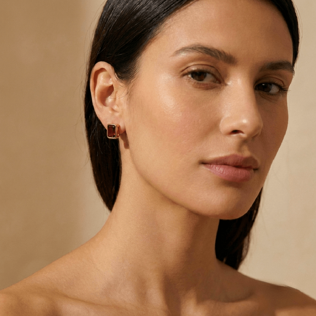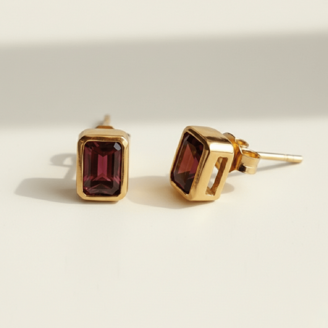 Clous d’oreilles en argent 925 plaqué or 22 carats ornés de grenats éclatants. Que ce soit pour une occasion spéciale ou pour illuminer votre quotidien, ces boucles d’oreilles sont un choix parfait.