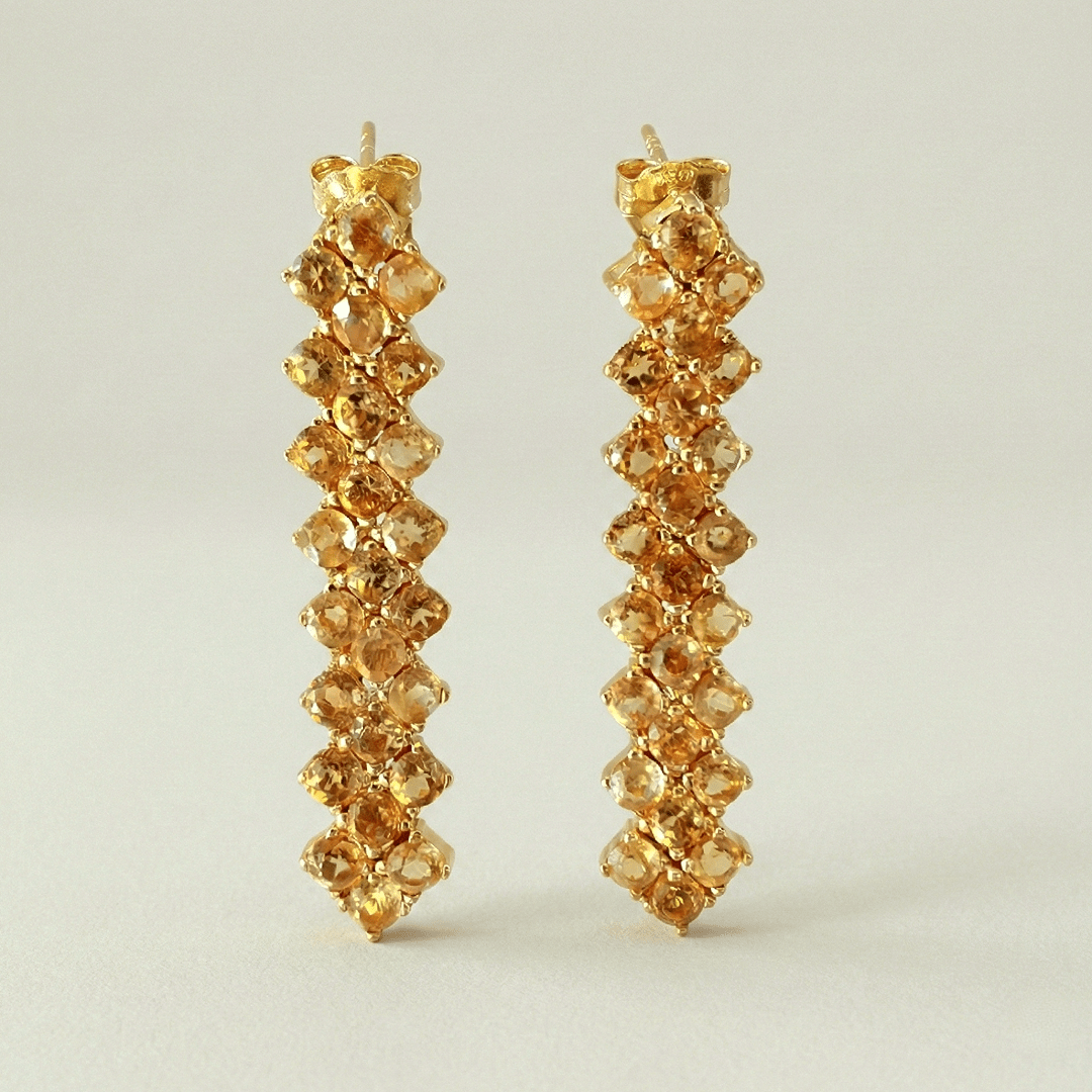 Boucles d’oreilles en argent 925 plaqué or 22 carats ornées de citrines serties en griffe pour un éclat solaire. Les boucles d’oreilles Rivière seront parfaites pour illuminer votre quotidien ou pour sublimer une tenue de soirée.