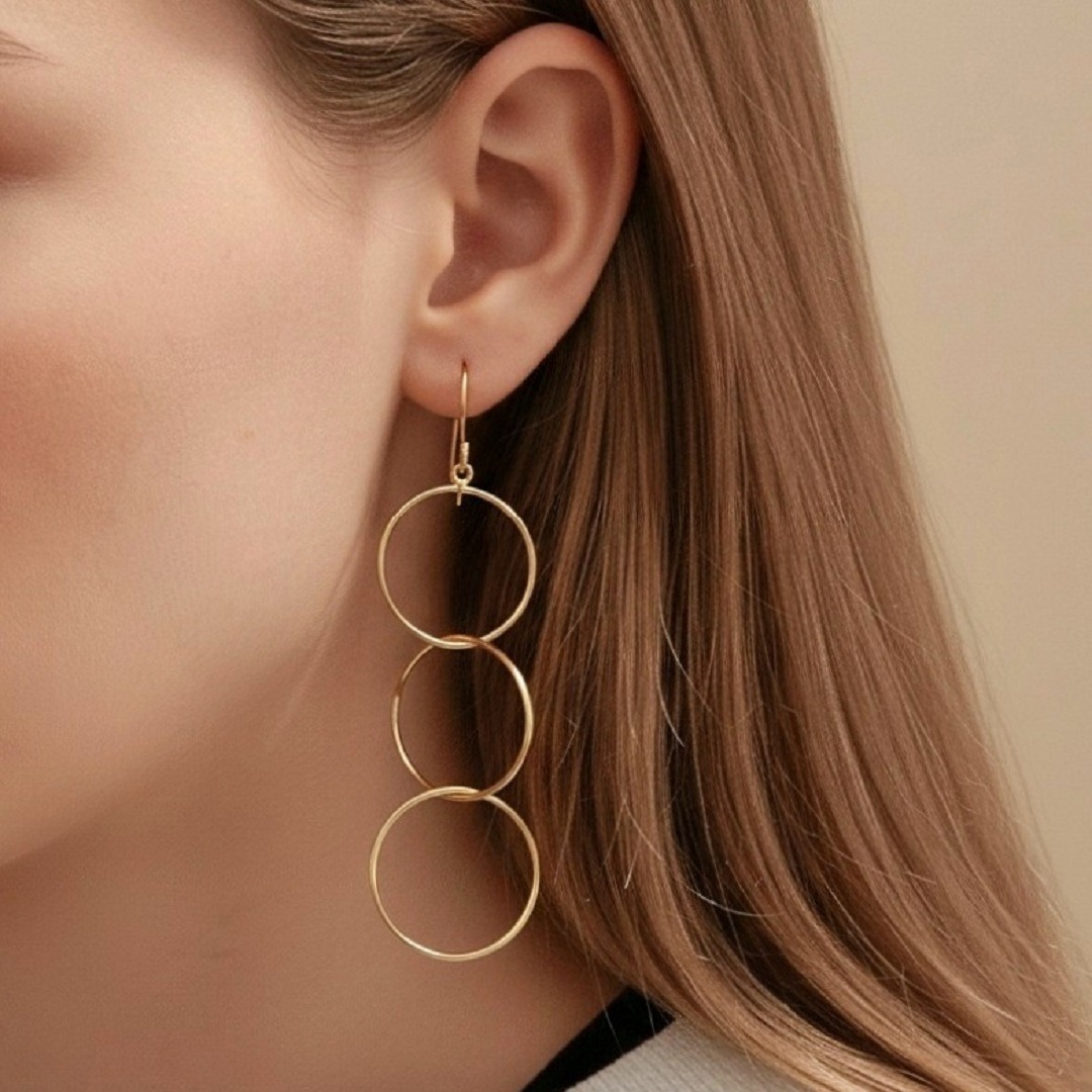 Boucles d’oreilles en argent 925 plaqué or 18 carats composées de trois anneaux fins et légers. Parfaites pour un style minimaliste et raffiné, elles ajoutent une touche de sophistication à toutes vos tenues.