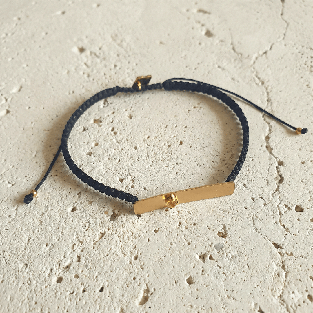 Illuminez votre poignet avec ce bracelet cordon barrette en citrine, une pièce lumineuse et raffinée. La pierre solaire, montée sur une barrette en argent 925 plaqué or 18k, rayonne sur un cordon noir ajustable, alliant éclat naturel et élégance minimaliste.