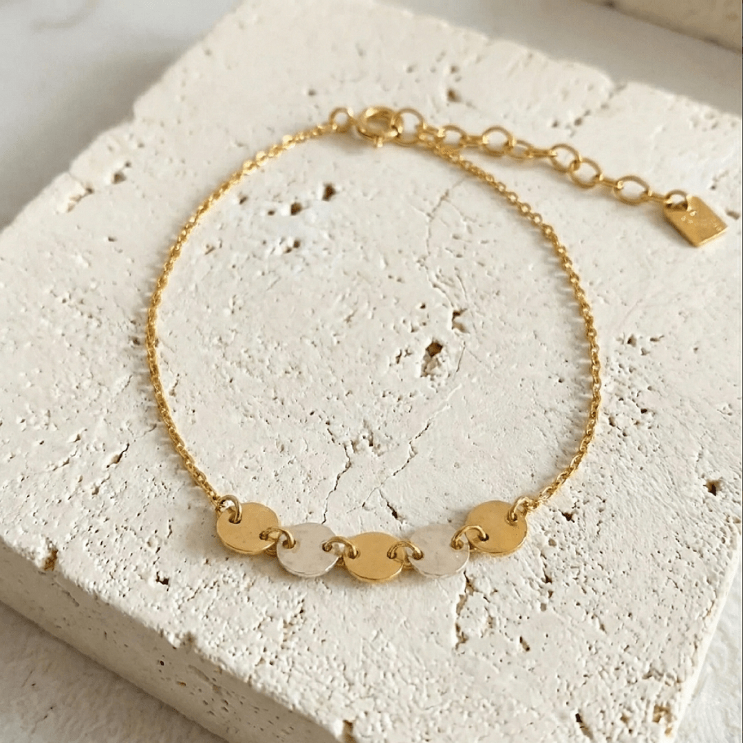 Bracelet 5 pastilles bicolores en argent plaqué or 18 carats.