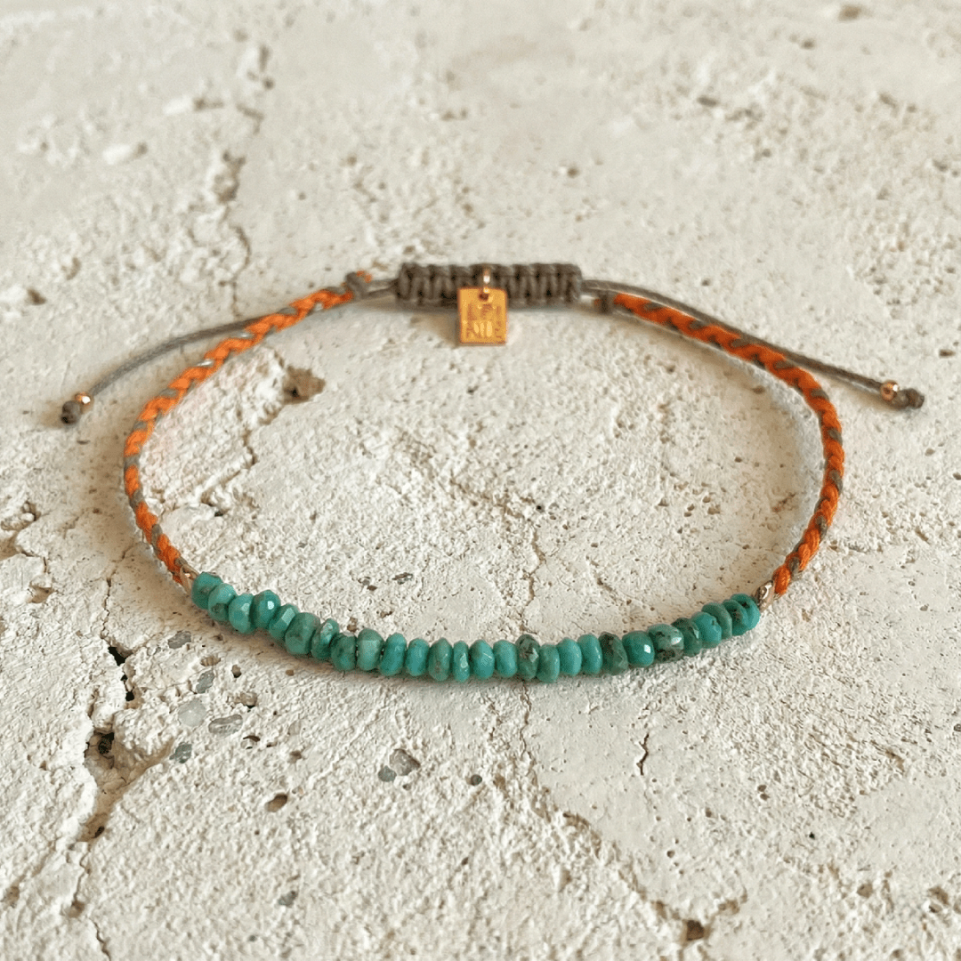 Le bracelet turquoise d’Arizona tressé orange est un bijou artisanal, confectionné à la main avec soin. Il associe l’intensité des pierres naturelles de turquoise à un cordon tressé orange et beige, pour un style à la fois bohème, solaire et authentique. Chaque turquoise d’Arizona est choisie pour ses nuances naturelles uniques, symboles de protection, d’équilibre et d’énergie positive.