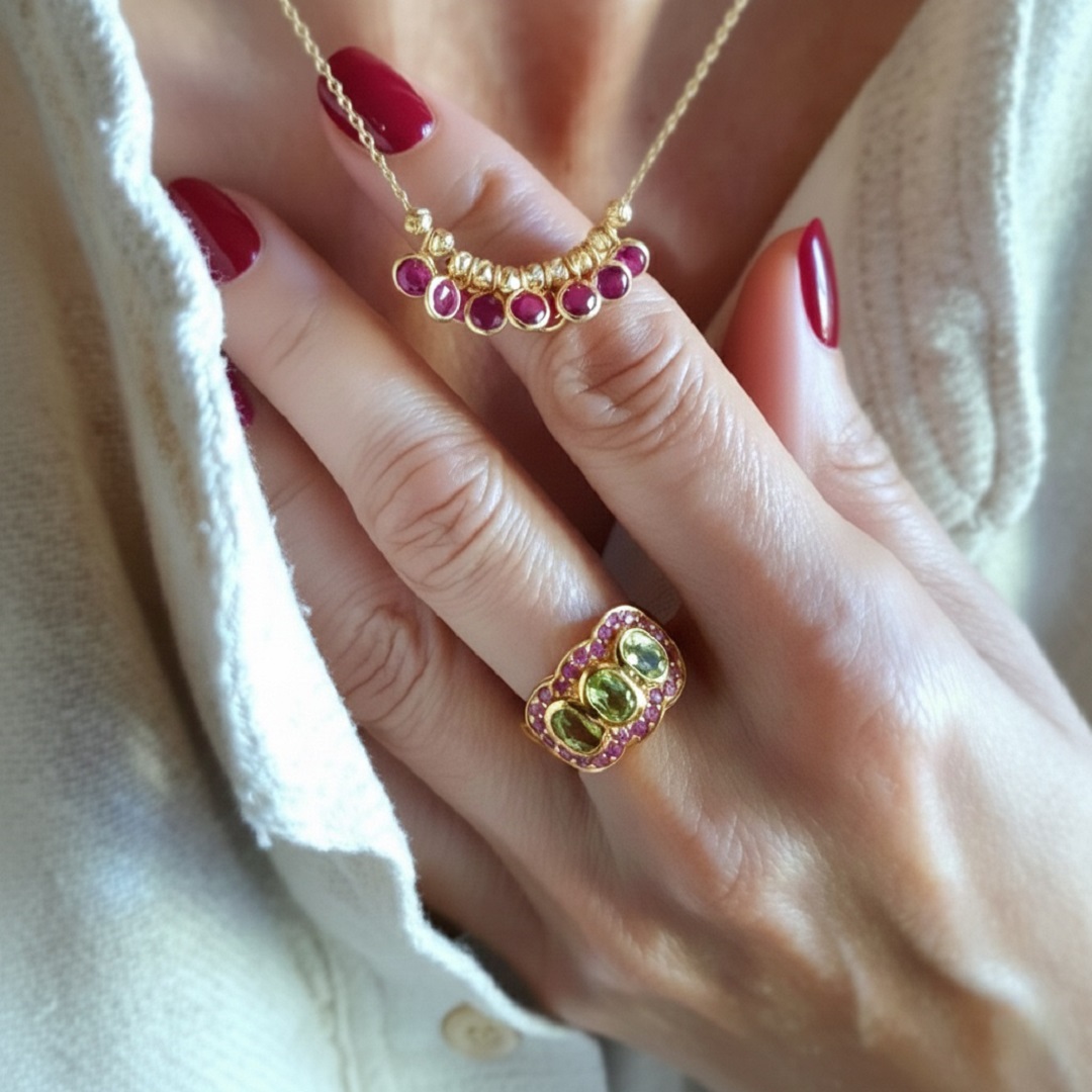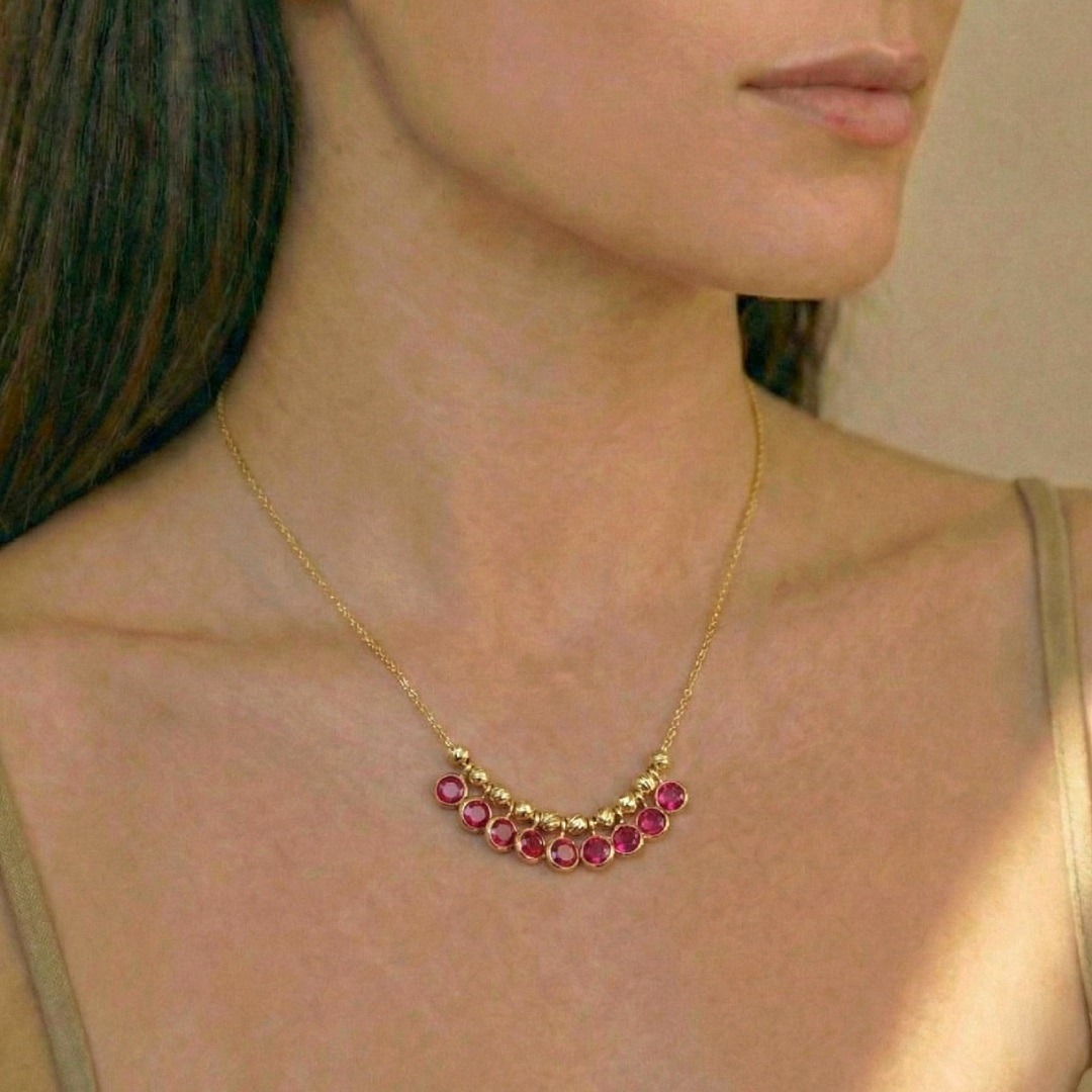 Collier Lou en argent 925 recouvert d’or 18 carats orné d’agates roses étincelantes. Un bijou intemporel et raffiné, parfait pour sublimer toutes vos tenues.