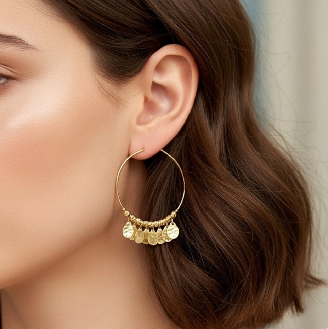 Créoles en argent 925 plaqué or 18 carats ornées de gouttes martelées.